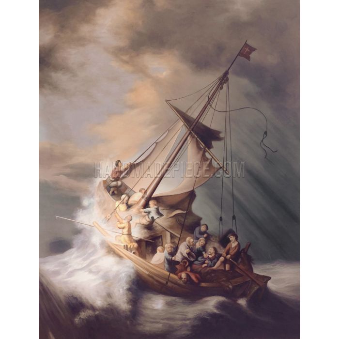 All oil painting reproductions of Christ in the Storm can be customized with various options of sizes and frames, original size 160 cm (62.99") * 127 cm (50"). Art recreation is also offered for seascape oil paintings if need to change technique, style, or colors. Let HandmadePiece Art Store help you bring this baroque masterpiece to your life!